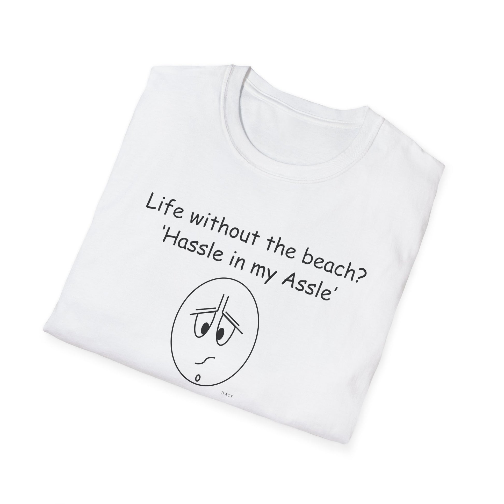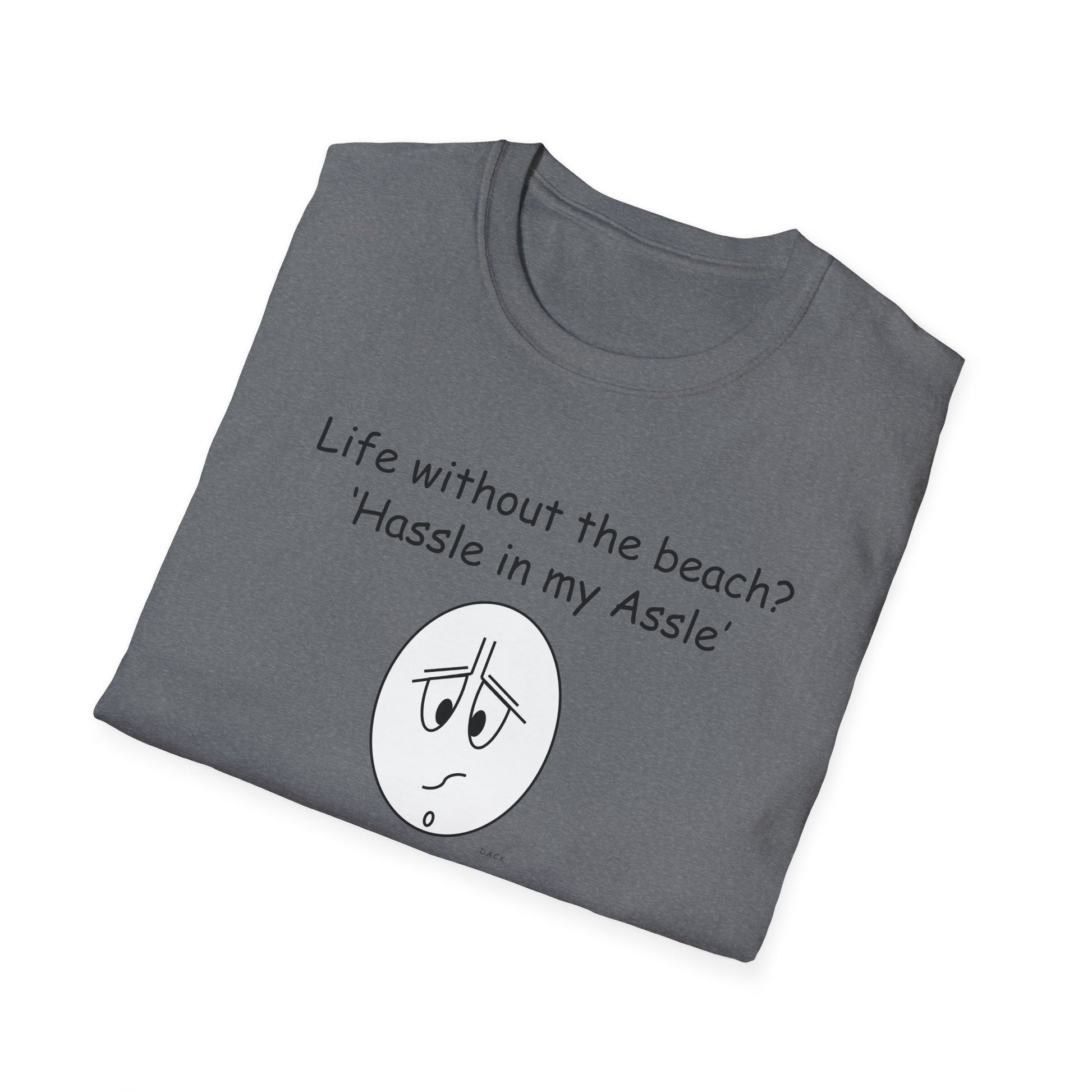 Life was meant to be spent on the beach! Soaking up the rays, listening the waves crashing on the shore. Endless days of absolute bliss! And life without the beach - It's just a Hassle in your Assle! Great for all those beach lovers out there and people who can relate to this. Crafted for adults, this tee is perfect to express your true feelings!