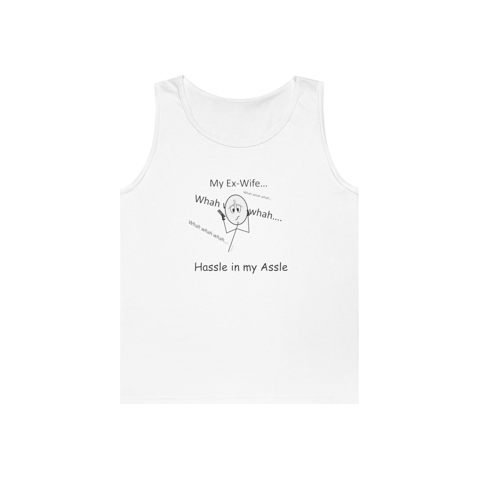 Ex Wives - What a Hassle! They didn't improve after the divorce either! They're such a Hassle in your Assle! Stay cool and comfortable with this stylish Unisex Heavy Cotton Tank Top. Perfect for warm days, it offers a relaxed fit that feels easy and breezy. Whether you're lounging at home, hitting the gym, or enjoying a summer barbecue, this tank top adds a fun, laid-back vibe to any setting. It's a great choice for anyone looking to express their sense of humor while staying stylish. Ideal for casual outings, beach trips, or as a funny gift for friends celebrating birthdays, holidays, or just needing a good laugh. Get ready to turn heads and spark smiles!